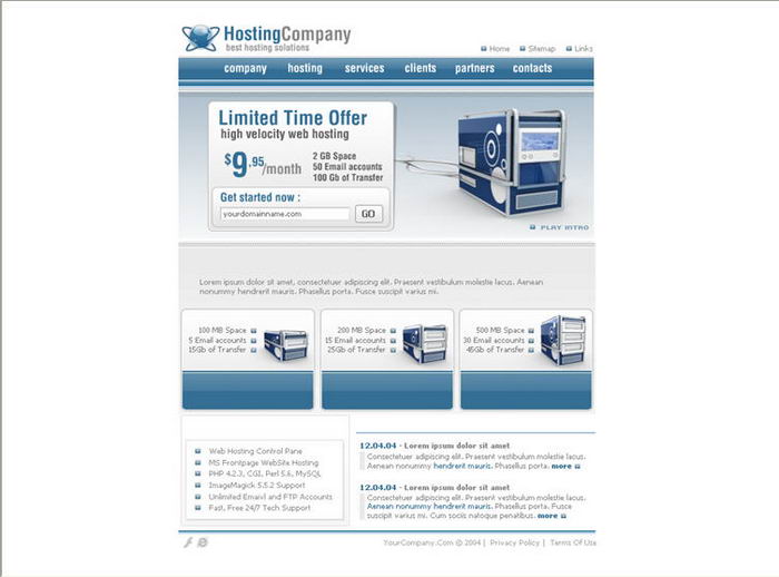 Servers, virtual hosting space company template