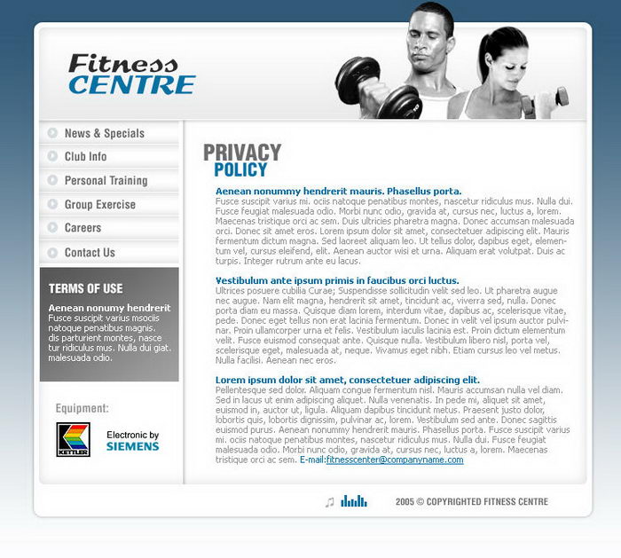 Health club website