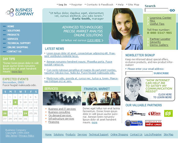 Blue software company's Web site templates