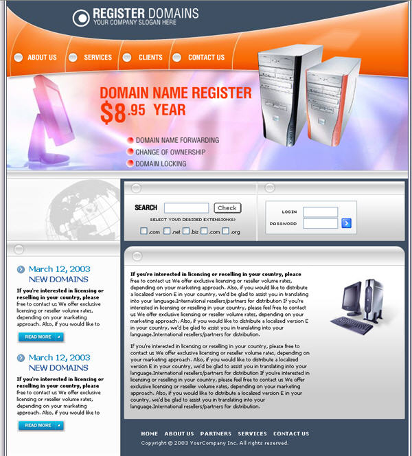 Server, hosting, space rental, domain name registration template