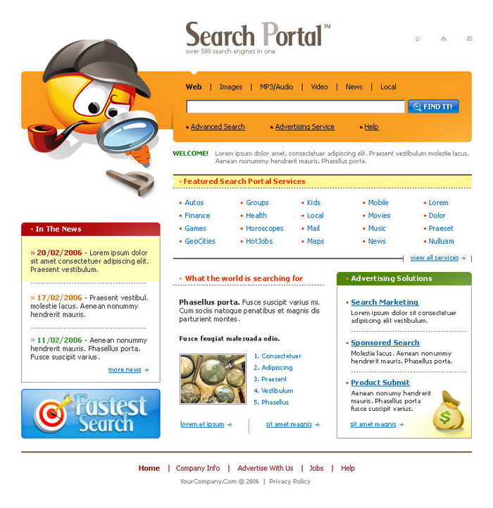 Vertical search engine web page templates