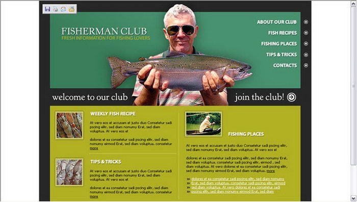 Fishing club website layout