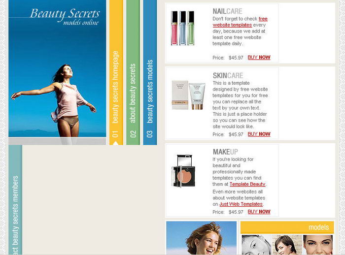 Teenage beauty website template psd, htm